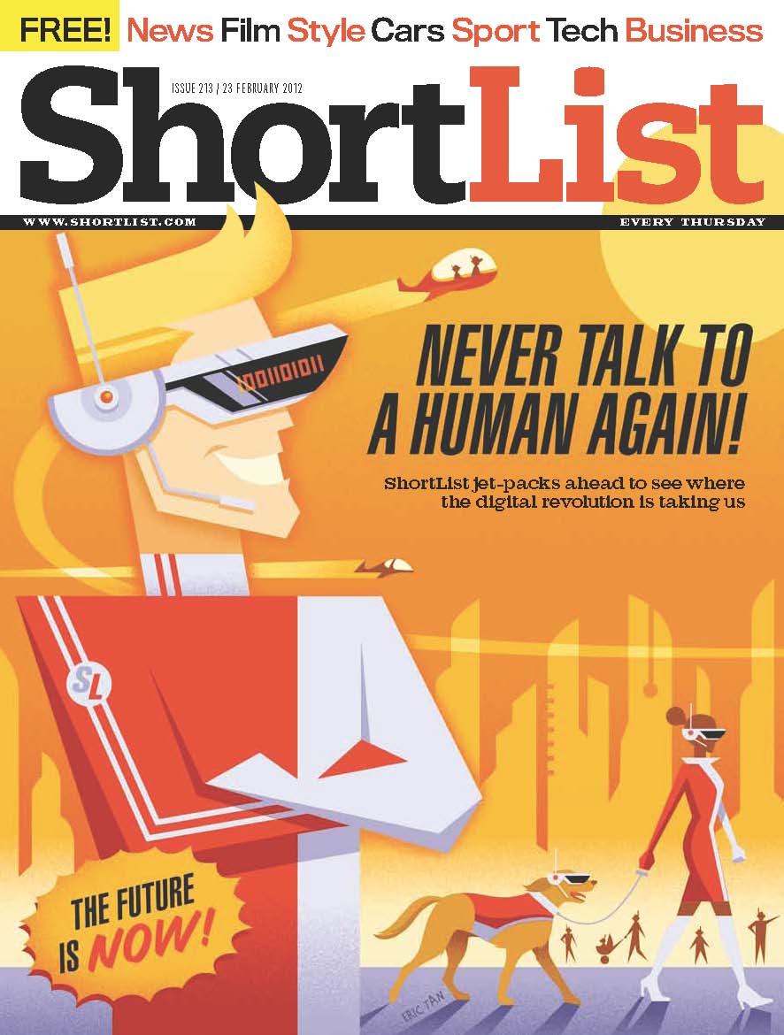 When I lived in London a few years ago, I looked forward to getting Shortlist magazine every thursday before I hopped onto the tube to go to work. It was a great read - covering everything from sports, to gadgets, to films and television. Even after I got to the office, my thursdays were much less productive as I found myself reading the articles instead of concentrating on work. It was a nice surprise to be contacted by the creative team at Shortlist a few weeks ago to illustrate the cover for their tech issue. There was no way i could say no after all the relaxing thursdays they provided me when I lived in the city. Hopefully the issue I got to work on will find its way into the hands of someone like me, who was too drunk by thursday and needed something interesting to keep him awake on that long train ride headed to the workplace. You are a life-saver Shortlist!